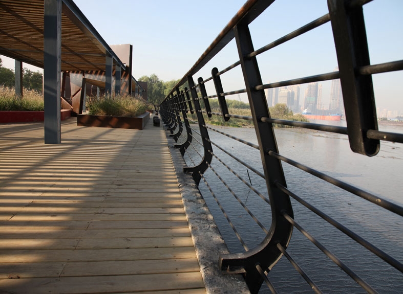 場地是鋼鐵廠和造船廠的工業(yè)廢棄用地,緊鄰黃浦江。被改造成為再生的景觀,人工濕地,并具有防洪功能。充分利用恢復(fù)性的設(shè)計(jì)策略,處理受污染的河水,并形成美麗的河濱。