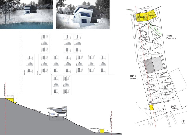 在Kärnten的Faaaker See,一塊非常狹長的坡地上,矗立著一棟半獨立式度假小屋。