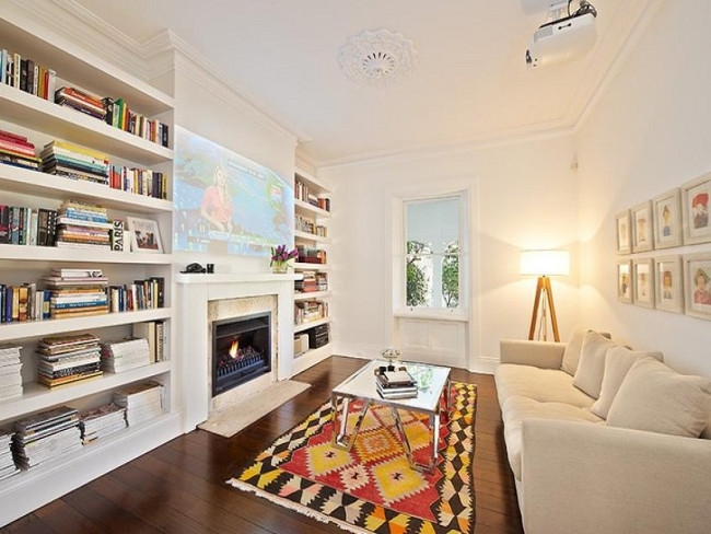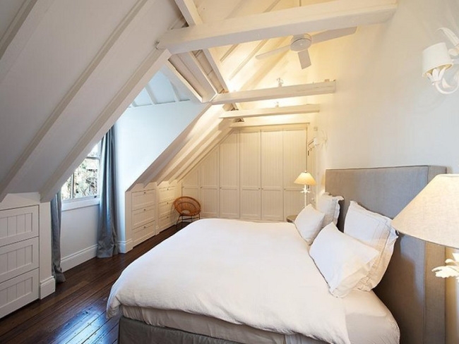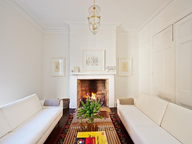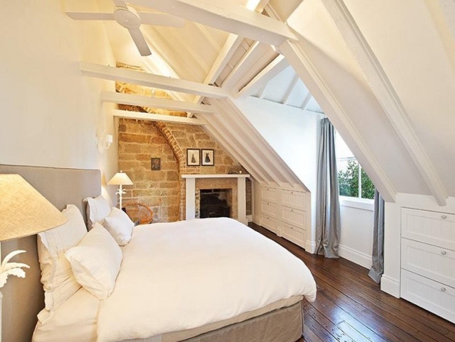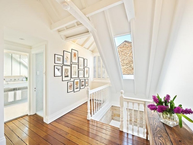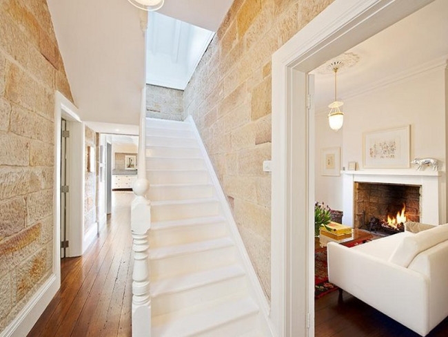 白色的家具,墻面,天花。配上原色的木材地板還有未經(jīng)細(xì)琢的砂巖。