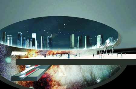 從高度上講,平安國際金融中心將是未來深圳最高樓,但是從尺度上講,有著“深圳之眼”和“城市光環(huán)”美稱的市民中心水晶島,無疑將成為真正意義上的“深圳城標”。水晶島位于市民中心前市民廣場上,其最吸引人之處是一個巨大的高架環(huán)形天橋。天橋高12米,直徑約570米,離地面的高度大致相當于人行天橋的高度。“圓環(huán)”內部和地下則將集公園、游憩、地鐵、軌道、鐵路站以及人行商業(yè)等各種功能于一體。