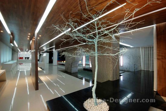 例如在2004年,我在晨光國(guó)際小區(qū)售樓處中,就以晨光這一時(shí)間理念為核心,把時(shí)間意象通過(guò)色彩的運(yùn)用,粉刷在一棵枯樹上,讓時(shí)間在此凝固,從而敘述了樓盤理念下的自然情結(jié),而這種常態(tài)卻往往被我們忽略了。我就是想讓人們認(rèn)識(shí)到生活就在我們身邊,就看你對(duì)生活有沒(méi)有激情,這是一種境界。