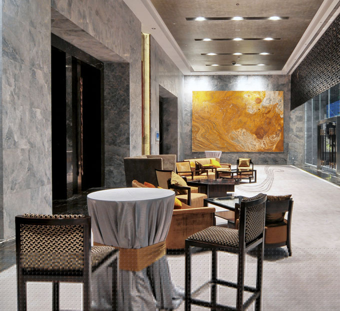 圣潔的白色游走于貴氣的帝王黃之間,形如真龍遨游于天際。底色是帝王之家的富貴黃,整塊石材夸張的紋路似一條神龍游弋于天地之間,龍袍飄灑,卷繞咆哮的黃河之水,富麗堂皇之余透露出大氣磅礴之勢。 皇為上,帝為下,古人的皇帝之意指天地,而皇帝一詞則是告訴人們,天地是萬物之主。 真龍?zhí)熳?,黃袍加身,君臨天下,一呼百應(yīng)!帝王黃袍富貴吉祥,黃袍裝飾的室內(nèi)空間輕易打造出富貴逼人、大氣磅礴的皇室風(fēng)格。