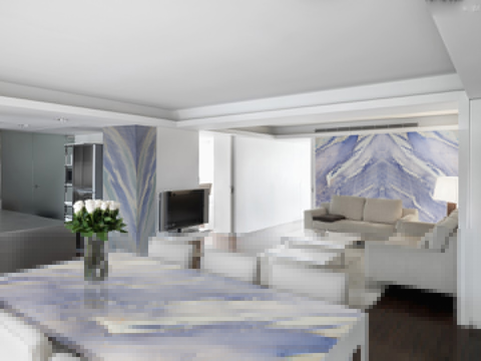 簡單描述: 自然流變,給人天馬行空的想象空間。銀白色、靛青色、湛藍(lán)色,三者的完美拼合,融貫成一幅氣勢磅礴的星空圖景。