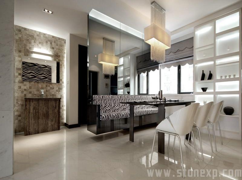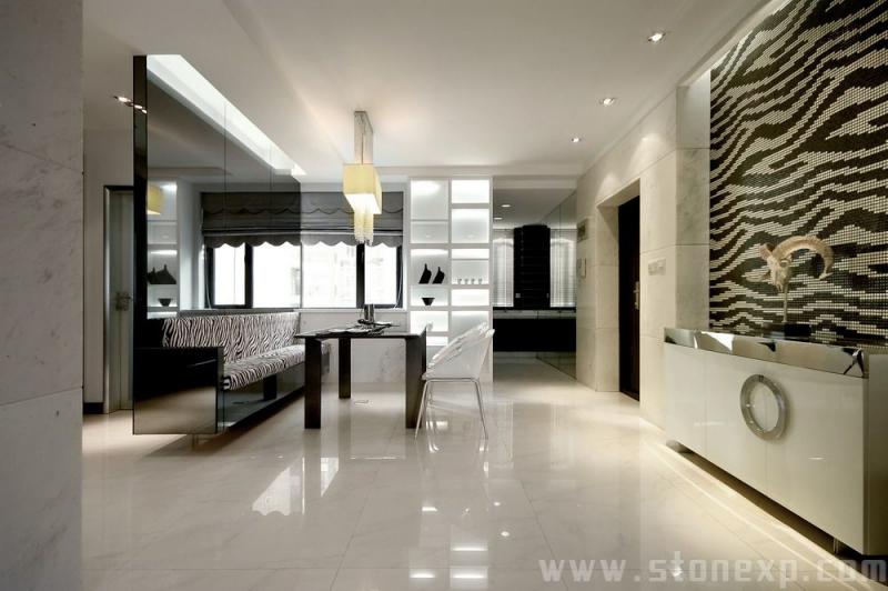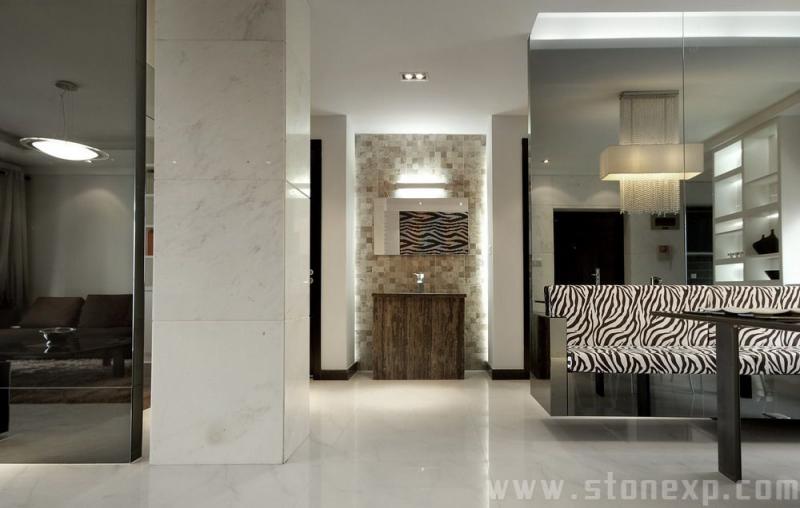 雖然空間整體干凈而簡(jiǎn)約,但在處理上運(yùn)用了皮草紋馬賽克、石材拼紋背景,節(jié)奏上使氣氛得到溫馨的調(diào)節(jié),冷峻中也不乏溫情的存在,讓陽光揮灑進(jìn)來,在空間中自由蜿轉(zhuǎn),以此得到最自然的光與風(fēng)。這是屬于都市白領(lǐng)們的精神家園。