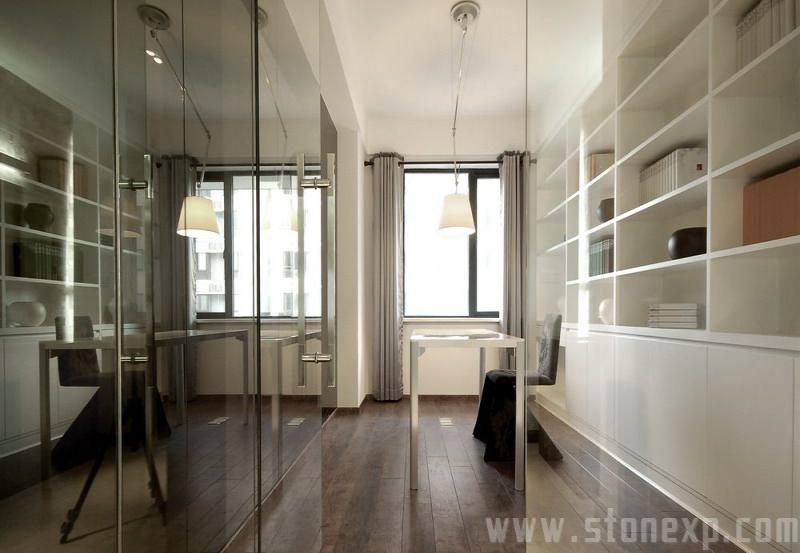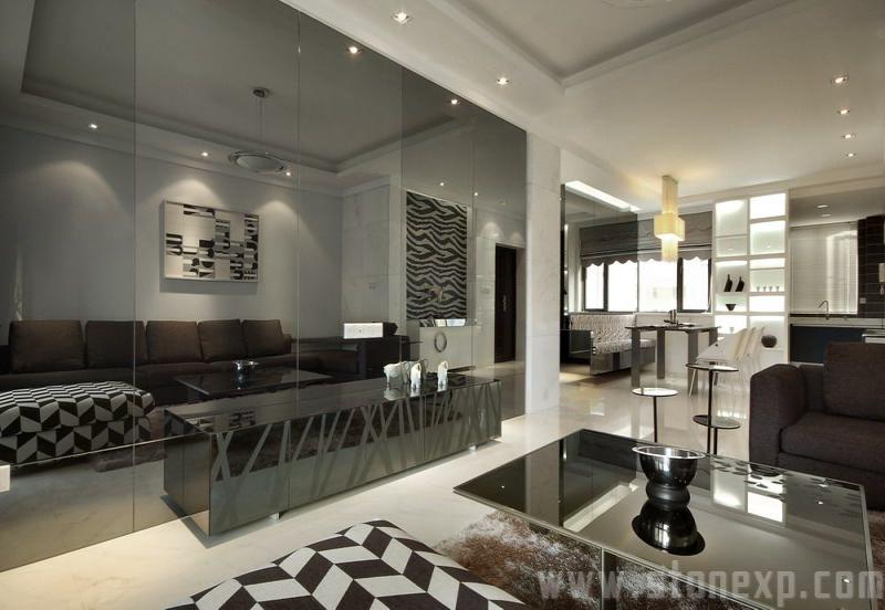 樣板房戶型本身特點(diǎn)鮮明:板式格局、采光通風(fēng)很好。三室兩廳的戶型也中規(guī)中矩,但有些硬傷:進(jìn)門之后即面對(duì)餐廳,絲毫沒有回旋余地,感覺局促,進(jìn)入臥室的過道狹長(zhǎng),暗淡無光。在設(shè)計(jì)戶型平面的過程中,就做了若干個(gè)方案分析解決這些問題。經(jīng)過幾輪PK,確定了“以退為進(jìn)”的方式,即采用灰鏡材質(zhì),把入戶門對(duì)面的空間感推進(jìn)、引伸,視覺上起到拓展空間的效果,解決局促的問題。并且將過道封堵,成為主臥室的衣帽間,增加了一個(gè)舒適生活的必要功能。最終讓這個(gè)120平米的戶型看上去象130多平米的使用面積。