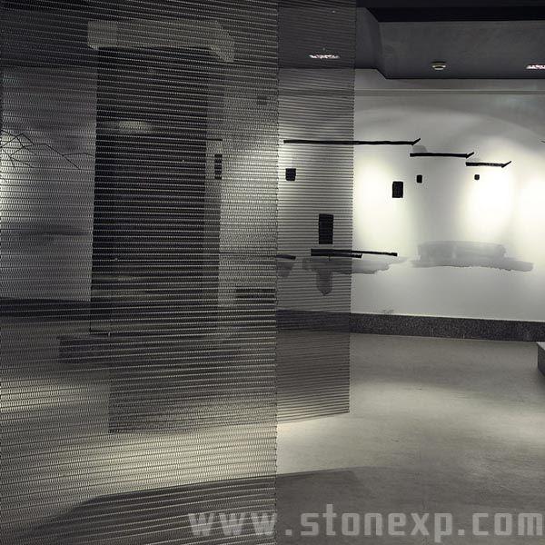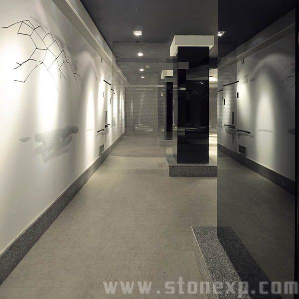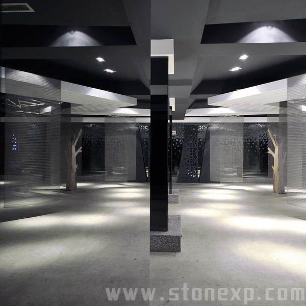材 料:加州金麻火燒板石材、不銹鋼簾、雕花灰鏡、彩繪、LG地膠