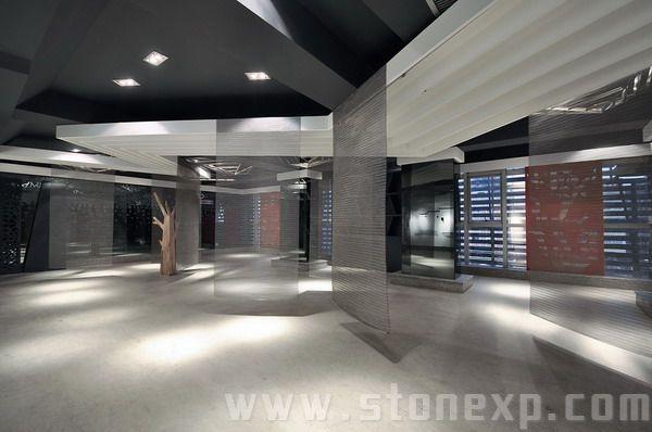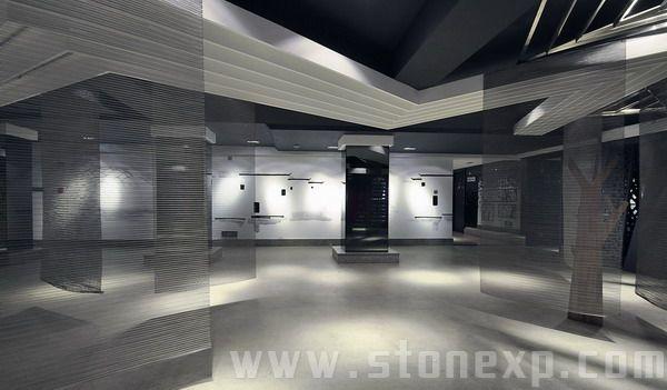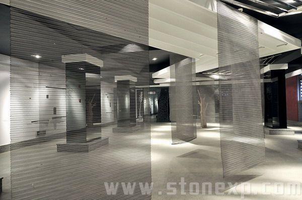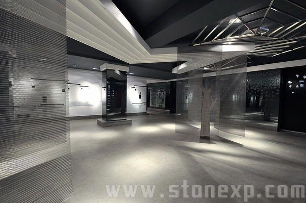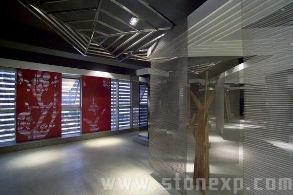 “精致中國(guó)生活”的家居產(chǎn)品展示是這個(gè)展廳的主題,解構(gòu)的設(shè)計(jì)手法決定了空間的基因,在虛幻的灰鏡上蝕刻了飄渺的花格圖案,圍繞著、彌漫著、濃郁的飄忽在時(shí)尚的東方元素里,不銹鋼簾在空間中剛毅的轉(zhuǎn)折、穿插,圍合出產(chǎn)品的展示位置,紅色的桃花鏤空鋁板是紅與黑的經(jīng)典搭配,白墻上的水墨勾勒著中國(guó)屬性,提示著空間的文化根源所在,柱子用灰鏡包裹,不斷倒映出水墨、鋼簾、桃花,反而空靈透徹了。