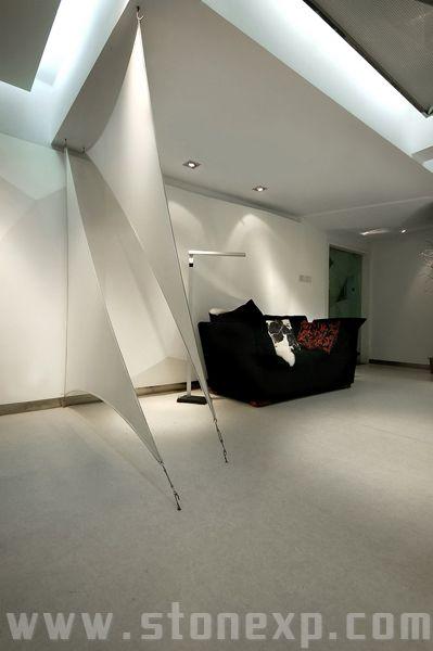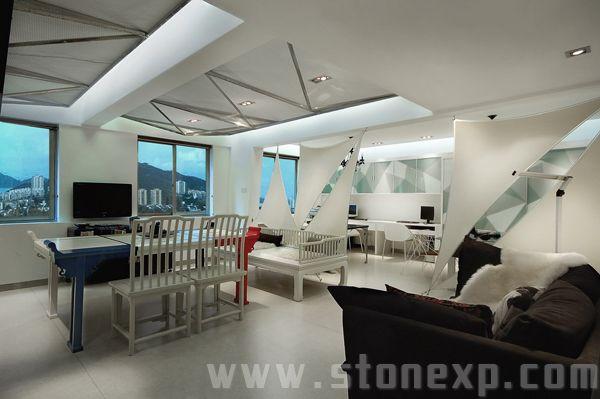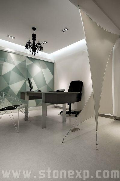 ETFE膜的風帆結構,具有相當?shù)囊晚g性,柔化了轉折的鋼勁力道,成為軟的雕塑,似透非透的把辦公區(qū)域分隔開來,里面便于工作,是創(chuàng)意的夢工場,轉折紋理的玻璃屏門,便是夢的衍生延展。