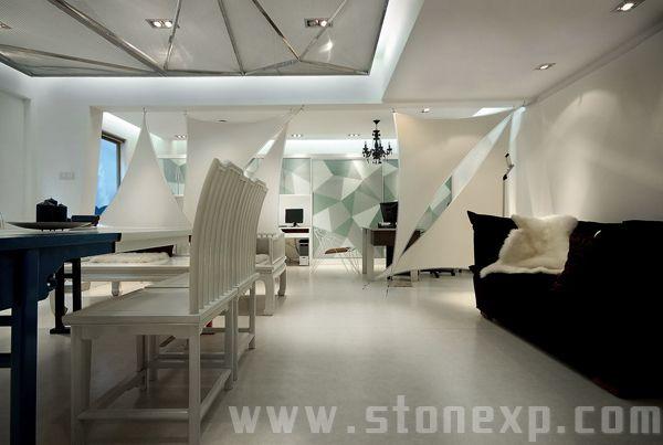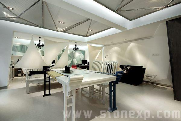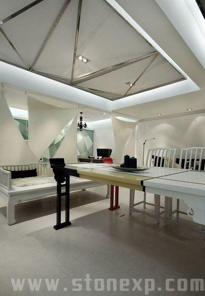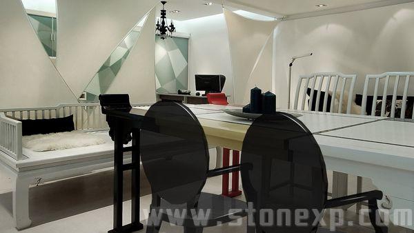 空間包容了多元文化的并存,改造過的明清書桌是主角,增加了白色的坐踏、黑色的斗柜,而白色的官帽椅和黑色的路易椅分列兩邊,就象一部時尚戲劇,讓康乾盛世與路易王朝的對話,似乎毫不相干的元素被空間蒙太奇的手法交匯到一起。其實,仔細分析,清初盛世與王朝是同一時代,只是古代交通不便,交流不暢而已。在這個資訊發(fā)達的時代,融合交匯,借以啟發(fā)設計與創(chuàng)意的靈感。