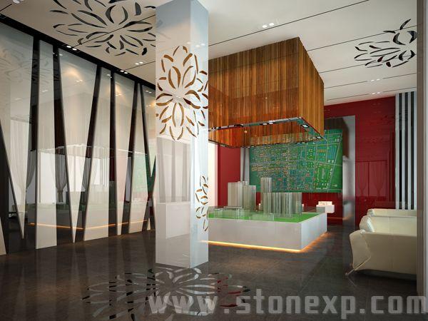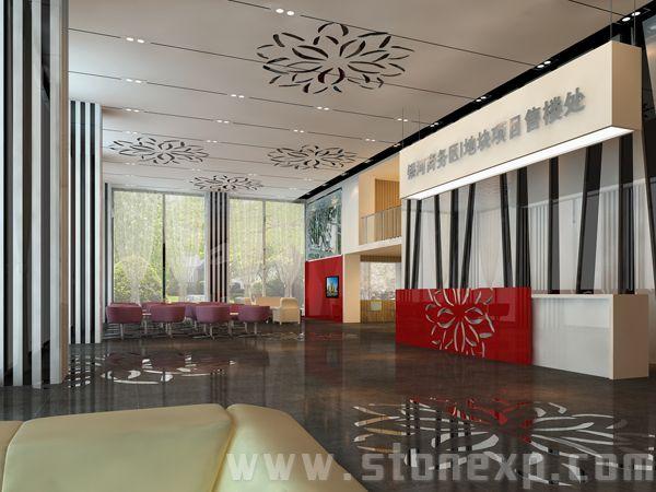 在平面空間布局上,為提升項(xiàng)目的檔次,將售樓處輔助空間布置于整個(gè)空間的兩側(cè)尾處,如銀行按揭辦公室、銷(xiāo)售經(jīng)理辦公室、財(cái)務(wù)室、網(wǎng)簽室等,這樣可以留出完整寬闊的大堂空間,沙盤(pán)展示區(qū)、前廳接待區(qū)、業(yè)務(wù)洽談區(qū)布置地井井有條,交通流線上互不影響,高大明朗的感覺(jué)更好的表達(dá)出本項(xiàng)目的檔次感,榮耀感。