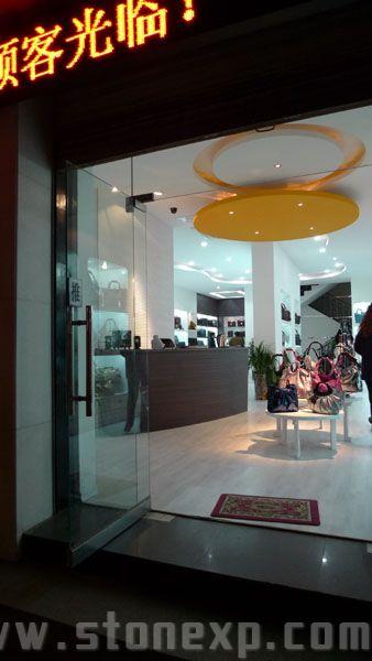 這是一家經(jīng)營皮包的店面,以女包為主??臻g原來方正硬朗,結(jié)構(gòu)柱比較大。設(shè)計(jì)師在構(gòu)思的時(shí)候充分利用原有的結(jié)構(gòu),把空間利用率做到最大,同時(shí)入口和貫穿店內(nèi)動線的頂面流線設(shè)計(jì),既糅合空間又增強(qiáng)女性的柔美。尤其是接待背景和弧形接待臺的配合表演,更是張弛適度。純白色的空間里把接待臺做成黑胡桃色,凸顯產(chǎn)品的不凡品位!