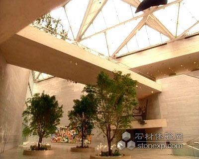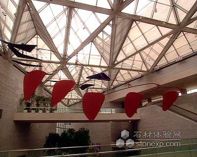 陽光透過蜘蛛網(wǎng)似的天窗,從不同的角度射入,自成一幅美麗的圖畫。這座費時十年,耗資近億美元建成的「東館」,被譽為“現(xiàn)代藝術(shù)與建筑充滿創(chuàng)意的結(jié)合”。