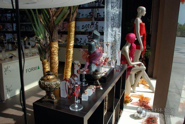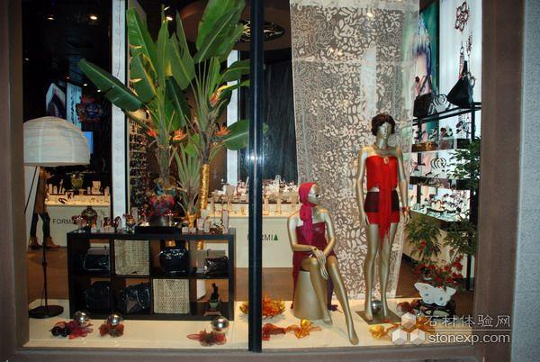 本次設(shè)計(jì)的一大亮點(diǎn)是:櫥窗和展臺的充分有機(jī)結(jié)合。植物與櫥窗互動融為一體,與本設(shè)計(jì)相得益彰。