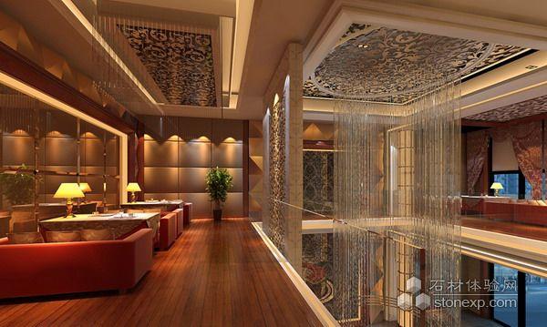 設(shè)計(jì)以時(shí)尚為主線,現(xiàn)代氣息強(qiáng)烈。開闊的大廳設(shè)計(jì)體現(xiàn)出會(huì)所的大氣與尊貴,透光云石材的前臺(tái)接待區(qū)、柱子的處理令大廳氣度非凡。從頂部延伸下來的水晶珠簾、大面積簍空雕花板的運(yùn)用這讓硬朗的空間中增添一絲柔美和趣味。一樓后半部分是分隔出來休閑區(qū),作為大堂的亮點(diǎn),即可接納散客,也方便群體客人等候時(shí)小坐。大廳左右兩側(cè)分隔出各類包房與小型會(huì)議室。