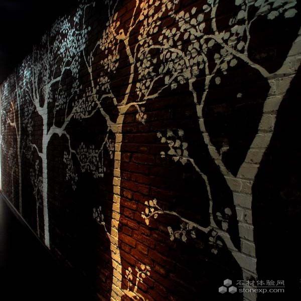 卡座之間的木框玻璃隔斷造型很是特別,抽離了傳統(tǒng)的表現(xiàn)形式,從地延伸到天花與之融為一體,保證了客人的私密性又渲染了空間氣氛,中國(guó)書(shū)法的創(chuàng)意更是一大亮點(diǎn),現(xiàn)代餐廳中透出的中國(guó)元素總會(huì)令人感動(dòng),踏足其中流連忘返。大廳中穿插的桃花樹(shù)和白色枯樹(shù)桿造型,雅致包房中的紅磚墻、素色大型手繪這些細(xì)節(jié)都延續(xù)了設(shè)計(jì)師對(duì)自然元素的喜愛(ài)。