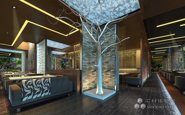 走進(jìn)大廳,眼前豁然開(kāi)朗,綠意盎然的大樹(shù)扮演著主角。植物,在此作為一個(gè)造型主題也是空間中一個(gè)重要場(chǎng)景,它將封閉的空間變的充滿(mǎn)新意而具活力!空間在一“收”一“放”之間,形成強(qiáng)烈的節(jié)奏感,本不寬敞的空間通過(guò)設(shè)計(jì)師的精心布局,劃分為迎賓地臺(tái)區(qū)、主廳、卡座區(qū)、雅致包房及格調(diào)田園區(qū),井井有條,相得益彰。