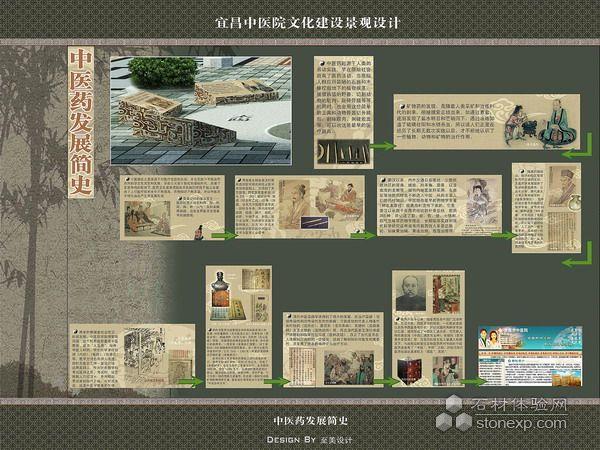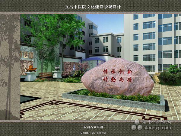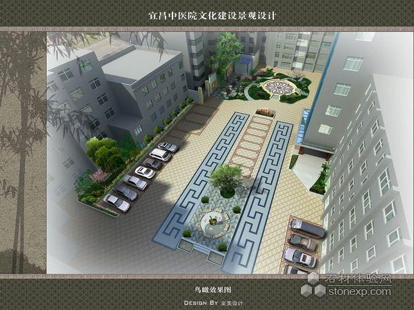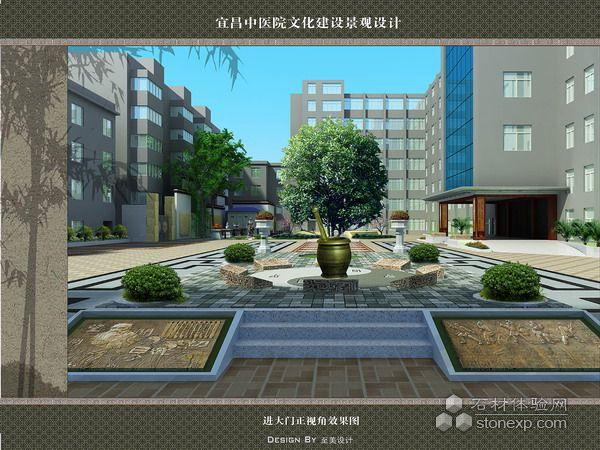 設(shè)計(jì)師在滿(mǎn)足院內(nèi)空間使用功能的前題下,最大程度通過(guò)景觀設(shè)計(jì)體現(xiàn)傳統(tǒng)中醫(yī)文化魅力。院內(nèi)地面大面積鋪以青石磚,從時(shí)間的角度闡述了中醫(yī)源遠(yuǎn)流長(zhǎng)的歷史。在青石磚地面中采用中式回型紋拼花的手法,使空間更富于層次,當(dāng)人們站的住院大樓上,會(huì)驚喜的發(fā)現(xiàn)主院區(qū)地面及停車(chē)線(xiàn)設(shè)計(jì)的與眾不同,這也是中醫(yī)文化在細(xì)微部的體現(xiàn)。“丹壁”中國(guó)文化的產(chǎn)物,設(shè)計(jì)師把它安排在大門(mén)口,希望人們一進(jìn)大門(mén)就能感受到強(qiáng)列的中醫(yī)院氣息。兩步臺(tái)階之上地面設(shè)計(jì)成“太極圖”,“太極”在中國(guó)文化中是集中體現(xiàn)陰陽(yáng)和諧的價(jià)值理念,展示陰陽(yáng)消長(zhǎng)、陰陽(yáng)轉(zhuǎn)化的規(guī)律。而這也正是中醫(yī)中認(rèn)識(shí)疾病、預(yù)防疾病、治療疾病的理論基礎(chǔ)。圍繞太級(jí)的八塊“XX石”以順時(shí)針排列,其中刻上中醫(yī)文化從發(fā)源到至今的現(xiàn)代醫(yī)學(xué)近千年的演變過(guò)程。在“太極圖”正中擺上中醫(yī)標(biāo)志性制藥器具“沖桶”,通過(guò)制藥器具特別展示,突出中醫(yī)院與其它醫(yī)院的區(qū)別。中醫(yī)用五行學(xué)說(shuō)闡述五臟六腑間的功能聯(lián)系以及臟腑失衡時(shí)疾病發(fā)生的機(jī)理,用于指導(dǎo)臟腑疾病的治療,在“沖桶”的周?chē)O(shè)計(jì)師布置了五棵樹(shù),這五棵樹(shù)分別代表了陰陽(yáng)五行中的金、木、水、火、土,從另一方面表現(xiàn)出病因、病機(jī)、診法、預(yù)防、養(yǎng)生等內(nèi)容。延著視線(xiàn)我們能看到一塊橫臥巨石,上面刻著中醫(yī)院的院訓(xùn),安排在此是希望對(duì)全院干部職工的激勵(lì),也能讓病人更好的了解醫(yī)院的文化、管理及本院的醫(yī)德醫(yī)風(fēng)。