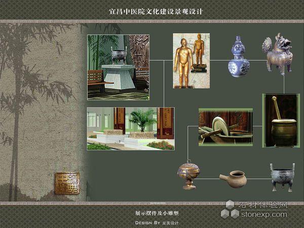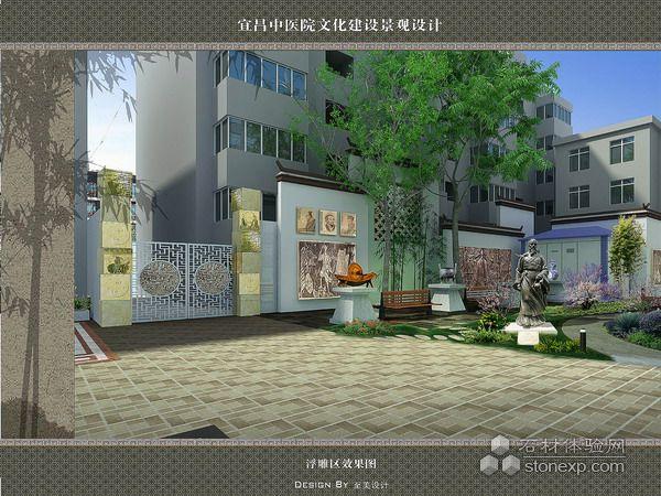 園林區(qū)的設(shè)計(jì)首先是體現(xiàn)在實(shí)用的基礎(chǔ)上,滿(mǎn)足病人及職工鍛練、休閑的需要。圍墻的設(shè)計(jì)上借鑒了古代中式建筑元素,白墻青磚古香古色,墻邊特別栽種了竹子,“竹”在中國(guó)文化中是堅(jiān)強(qiáng)挺拔的代表,雖然是中空的,韌性強(qiáng),不剛不柔,是被古人看作“氣節(jié)”的象征,在此代表了醫(yī)生治病救人的責(zé)任和病人克服病魔的決心,“推窗見(jiàn)綠色,兩耳聞絲竹”的美好畫(huà)卷在院中得到展現(xiàn)。墻壁上石質(zhì)浮雕,也是對(duì)中醫(yī)文化的推廣介紹,讓病人在休閑之余有更多的機(jī)會(huì)了解中醫(yī)文化的博大精深。李時(shí)珍銅像、碾藥槽、人體脈胳銅像在此是對(duì)中醫(yī)文化的強(qiáng)化。園林區(qū)的植物不單有長(zhǎng)青的觀賞植物,更多的是各種藥草栽種其中,分別豎牌標(biāo)明藥理藥性,讓病人更多的了解中醫(yī)學(xué)知識(shí),很好的展現(xiàn)了宜昌中醫(yī)院的人文精神。圍墻邊的石質(zhì)門(mén)柱,由一塊塊四方石塊堆砌而成,每個(gè)面都刻上浮雕,這樣從一入大門(mén)就可讓人感受到濃厚的中醫(yī)氣息,并且與院內(nèi)景觀很好的揉合在一起,過(guò)度不顯生硬。我們遵循了陰陽(yáng)、五行的設(shè)計(jì)思路,通過(guò)陰陽(yáng)、五行在中醫(yī)學(xué)中的運(yùn)用,讓中國(guó)中醫(yī)文化在院區(qū)的每一個(gè)角落活起來(lái),形成獨(dú)特的中醫(yī)院景觀。