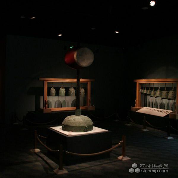 以突出珍貴的展品為前提,摒棄繁縟的裝飾,在燈光的運用上采用局部重點照明的方式。在色彩的運用上,大膽的采用暗紅色和粉綠色作為石造像和青銅廳的背景色,使展品的到有力的烘托。國寶展區(qū)主要展示圓明園獸首,以高大的海宴堂版畫為背景,四尊獸首佇立于前方,高大開敞的空間只擺放這四件國寶,體現其重要性和歷史性。