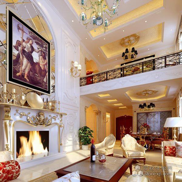主要建材:以天然石材、進(jìn)口壁紙、歐式配件、歐式油畫(huà)、壁爐等