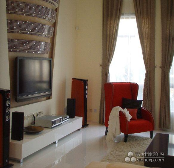 在淡色為背景的四維空間中,連續(xù)的、由弱而強的紅色既是空中的跳動點又是引發(fā)空間高潮的必不可少的重要元素。空間、色彩、新古典家具陳設及適當飾品的運用,營造了個性又不乏時尚、不乏味且令人思考、回味之空間。