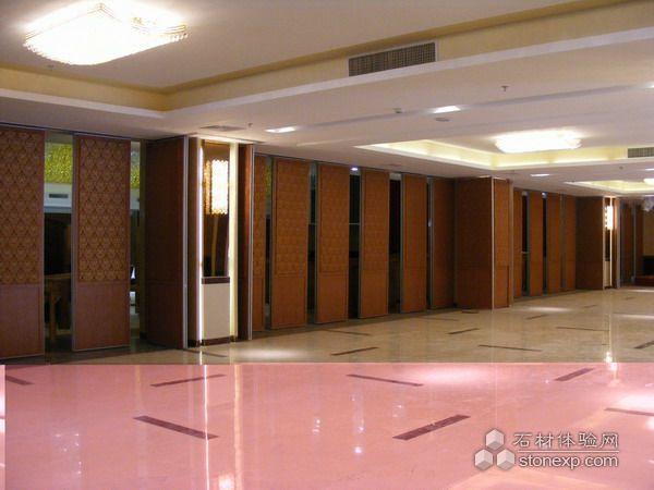東豪海鮮酒樓千人宴會廳一角。千人宴會廳采用中式風格,中間是主席位龍風臺,兩邊還有兩個小的偏廳,采用多功能移動墻分隔,具有濃厚的南海漁家風味。