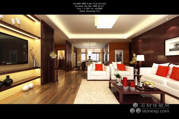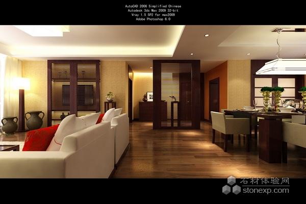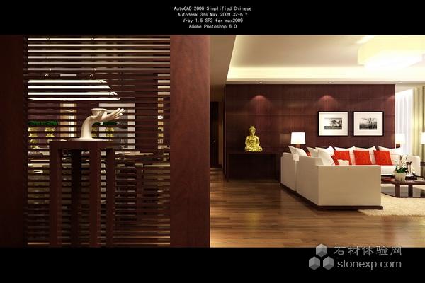 本案設計以偏中式,穩(wěn)重,靜意為主調,固選用深色櫻桃木與黃色壁紙為主色,局部點綴紅色壁紙體現中式韻味,地面選用胡桃木地板,頂面吊頂線條簡潔,保證燈光的鋪設既好,進門玄關處設置以半通透門細線條為造型的隔斷,讓內外若隱若現,為了保證造型和格局的統(tǒng)一,固在電視背影墻處同設置同一造型,三處為可移動拉門,隨時變化,增加客廳的靈活性,房屋的整體家具均采用梁志天先生設計的一擎系列中式家具,更充分體現了中式的風格。