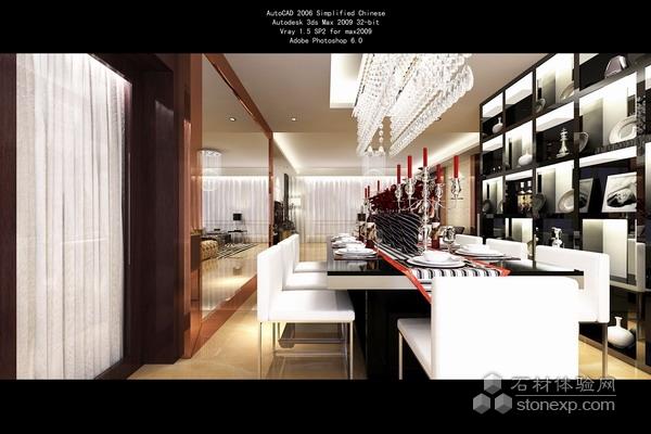 本案與第四帝國(guó)一為相似戶型,只是進(jìn)門處略為不同,所以采用進(jìn)門第一眼視覺(jué)進(jìn)行了一個(gè)擺放裝飾物的架臺(tái)的設(shè)計(jì),架臺(tái)材質(zhì)采用亮色珍珠,具有凹凸感,充分體現(xiàn)了此房設(shè)計(jì)的高貴與華麗的風(fēng)格,為了體現(xiàn)此風(fēng)格,設(shè)計(jì)采用高亮材質(zhì),比如,黑色玻璃,茶色鏡面玻璃,銀鏡,白色磨砂玻璃以及金,白兩色的馬塞克瓷磚,并配以白色軟包布與黑色胡桃木來(lái)張顯高貴與典雅,此案點(diǎn)精之處為黑白搭配的酒柜,酒柜的對(duì)面采用全墻鏡面,以此來(lái)擴(kuò)張餐廳的寬度感,家具的選用也是采用黑色胡桃木與白鋼類的簡(jiǎn)潔高雅家具以此搭配整體效果。