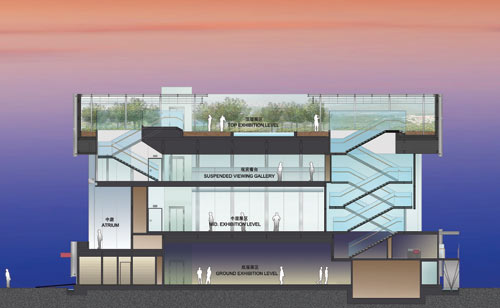 特區(qū)政府計劃以“無限城市--香港”為主題,建造一個能夠凸顯香港特色的展覽館,作為中國館的組成部分之一。為網(wǎng)羅本地相關專業(yè)人士最好的創(chuàng)意和構思,政制及內地事務局和建筑署在今年年初主辦了香港館概念設計比賽,共收到八十份參賽作品,其中冠軍的作品名為“無限空間”,是一個三層建筑結構。