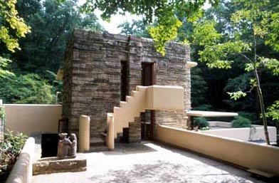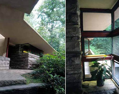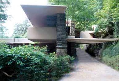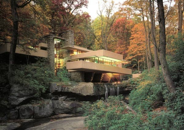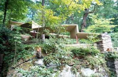 建筑在山林之中的度假別墅,也許大家已經(jīng)看過(guò)很多,但是建在溪水瀑布之上的別墅,你可曾聽(tīng)說(shuō)過(guò)?在美國(guó)賓夕法尼亞州的一個(gè)叫做“熊跑”的幽靜峽谷中,就有這樣一幢奇妙的房子。在茂密的叢林掩映下,在清清的溪流和嶙峋石塊間,這座房子從中心向各個(gè)方向伸展著、交錯(cuò)著,白色的巨大陽(yáng)臺(tái)凌空于水面之上,流水叮咚地從房子底下蜿蜒淌過(guò),從平臺(tái)下奔瀉而出。如果你有興趣,還可以從大陽(yáng)臺(tái)上順梯子往下爬,你在屋子里便已聽(tīng)到的潺潺流水聲,此刻便在你足下。你可以趴在巖石上,忘情地將手伸進(jìn)溪水中,或者只是靜靜地坐著,什么都可以想,什么都可以不想。在這樣的別墅中度假,該是怎樣的畫(huà)境,怎樣的詩(shī)意,怎樣的享受?這幢房子建成后就名聲遠(yuǎn)揚(yáng),經(jīng)常有人來(lái)此參觀,人們稱(chēng)之為“流水別墅”或者“落水山莊”。