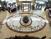 深圳威尼斯酒店——由金年華、西班牙米黃和萬壽紅等多種石材拼成的馬賽克拼花,是目前國內馬賽克產品最具代表性的經典之作,此工程獲得全國“魯班獎”