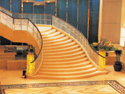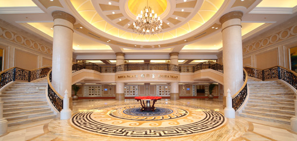 阿聯酋皇宮酒店,被譽為世界最豪華、八星級的酒店,環(huán)球石材集團有限公司在與意大利等國際公司激烈的競逐中,憑著突出的資源優(yōu)勢、技術優(yōu)勢、統(tǒng)籌大型與超大型工程石材的豐富經驗而中標,成為唯一入圍的中國公司。整個工程耗資逾30億美元,耗費近150000立方米的進口大理石,而酒店的核心部分,包括總統(tǒng)套房、部長套房、總統(tǒng)及部長Lobby、VIP入口等部位的裝飾石材均由環(huán)球石材集團有限公司提供。